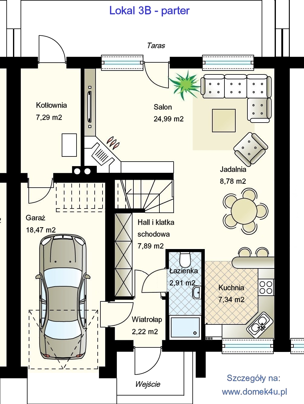 - powierzchnia użytkowa: 133,53 m2 plus garaż 18,47 m2,